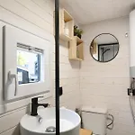 Neben einem Fernsehen mit mehreren Kanälen verfügt die Ferienwohnung Tiny House Nr 5 über einen Schreibtisch und eine Klimaanlage. Genießen Sie den Komfort eines Badezimmers in der Unterkunft, das mit einem Haartrockner und Handtüchern ausgestattet ist. Außerdem gibt es hier eine Dusche.